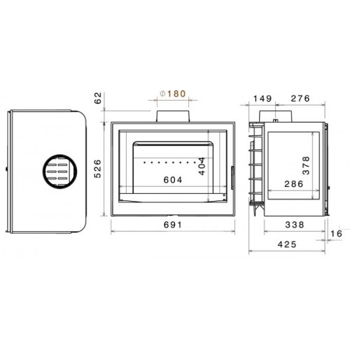 Топка L7 L (Liseo). Без дымосборника. С левым боковым стеклом.