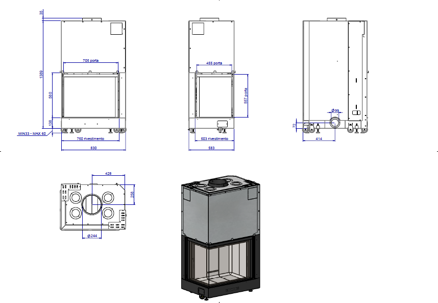 - Отсутствие нижней рамки стекла, увеличивает обзор огня.