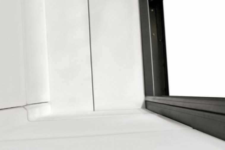 Закрытая дровяная rаминная топка MCZ Forma 75 со стеклянным фасадом, футеровкой топочной камеры из огнеупорного материала Alutec® и подъемным механизмом открывания дверцы (вертикально вверх), позволяющим визуально освободить топку от дополнительных линий, углов и ребер, тем самым сохраняя и подчёркивая её линейную конструкцию.