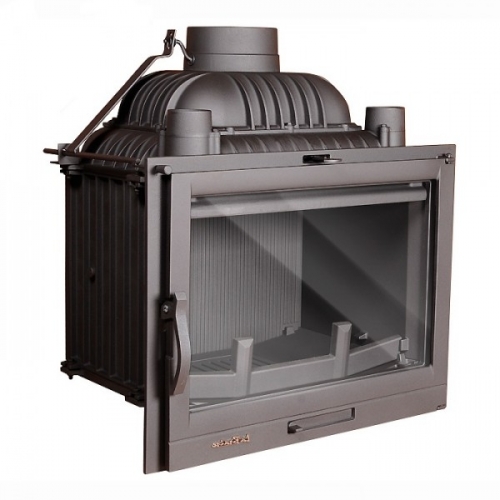 Система централизованной подачи воздуха в топку через два канала диаметром 80 мм. Полностью чугунная топка с функцией непрерывного горения. Камин имеет защитный гребень.