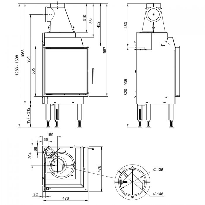 - Габаритные размеры ШxГxВ, (мм): 476x476x635