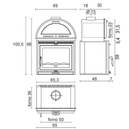 Проем:Дверца из эмалированной стали с жаропрочным стеклом, выдерживающим температуру до 750°, с самообдувом. Дверца на петлях.