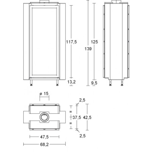 - Выход дымохода: Верхний