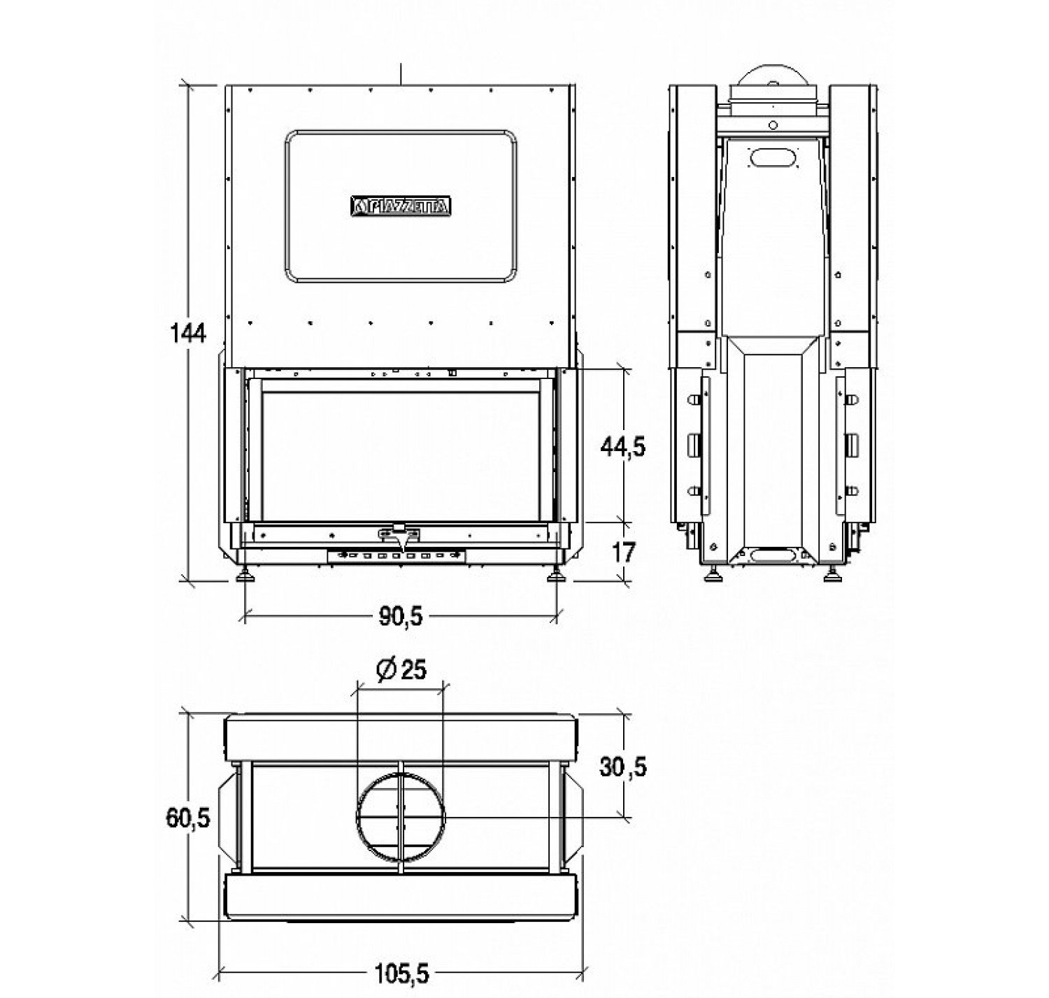 Каминная топка PIAZZETTA ME 90/44 В произведена в Италии.