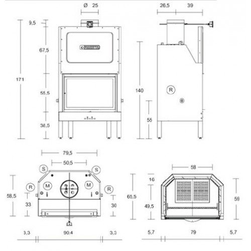 - Проем: Дверца из эмалированной стали с жаропрочным стеклом, выдерживающим температуру до 750°, с самообдувом. Подъемная дверца, установлена на петлях для облегчения читки.