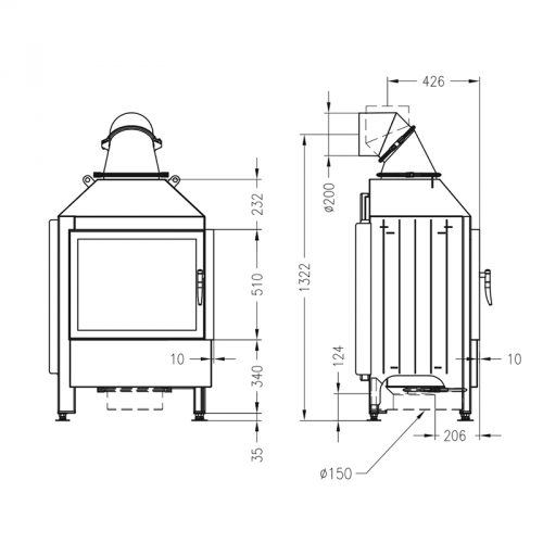 - Диаметр дымохода, мм: - 200