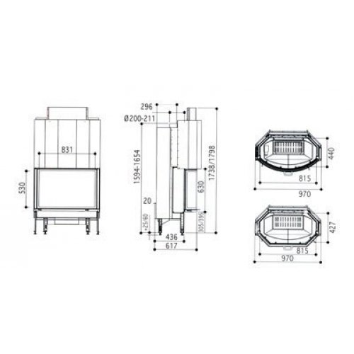 - Внутренняя отделка: чугун (501) или шамотный кирпич (531)