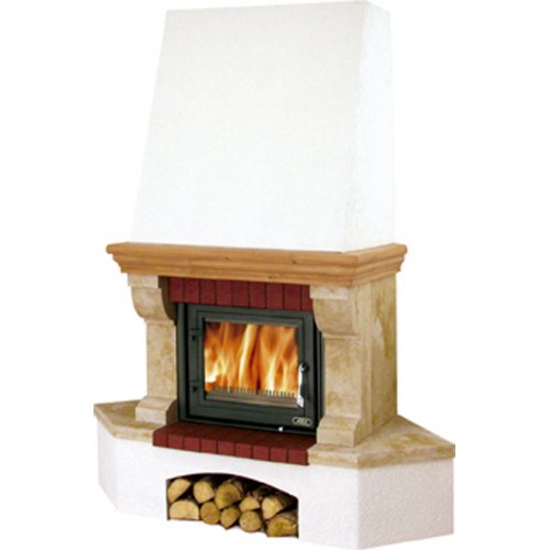 Угловой камин изготовлен из практичного материала – природного ракушечника. Портал выполнен в бежевом цвете, а низ камина – в белом. Камин оборудован нишей для дров - это очень удобно в том случае, если нет возможности поставить дровницу отдельно. Кроме того, в нише для дров может храниться одна кладка дров, которая просушивается до нужной сухости. Герметичная дверца не пропускает дым в помещение, а современные чистящие средства минимизируют количество сажи в топливнике и создают эффект чистого стекла на долгое время.