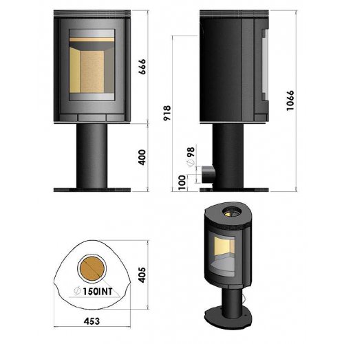 Дровяная печь с корпусом из стали, внутренняя отделка из огнеупорного материала. Большое жаропрочное стекло. Экономичный равход дров. Система "чистое стекло". Дожиг дымовых газов. Камин так же доступен в "настенном" исполнении.