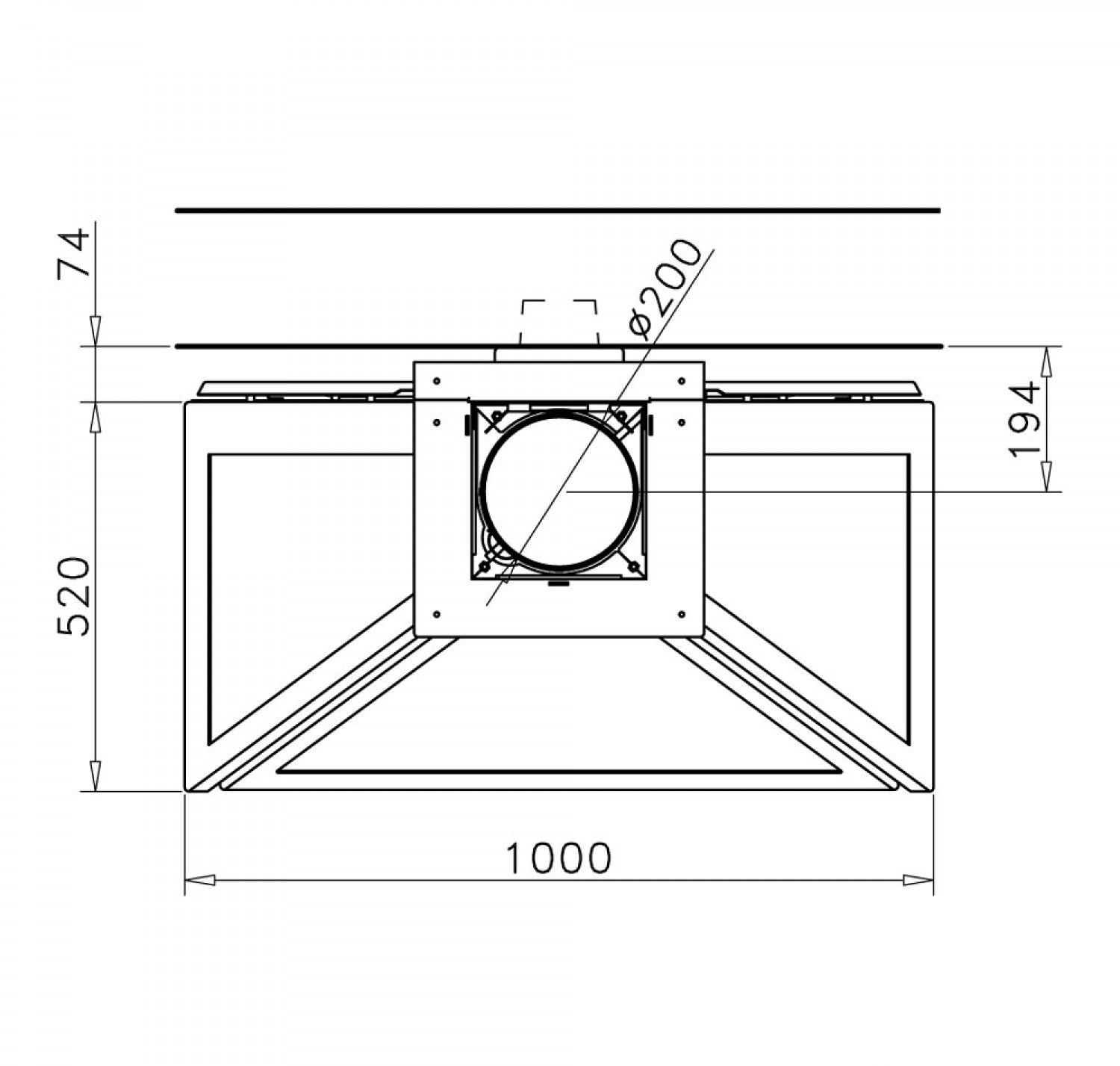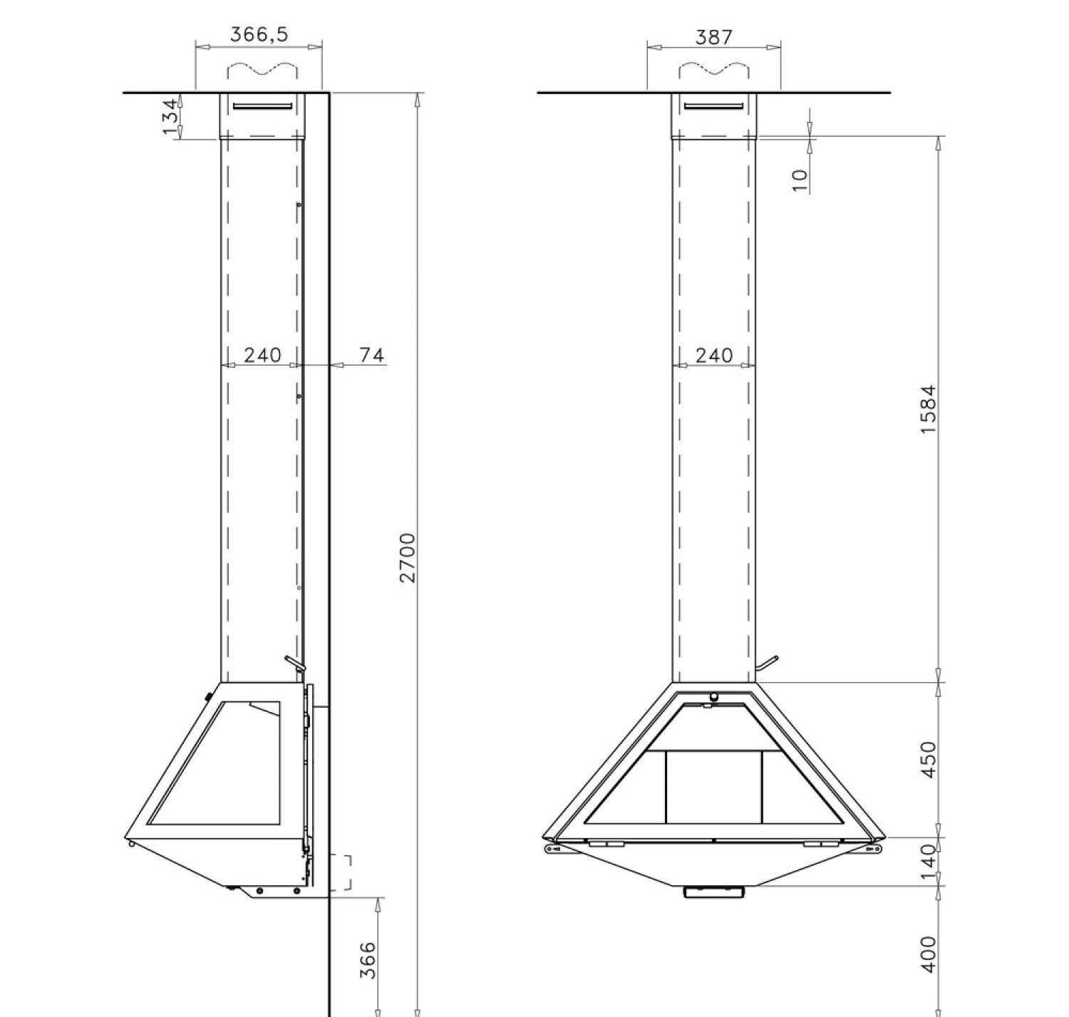 Фронтальный (пристенный) металлический камин. Дрова: 45 см.