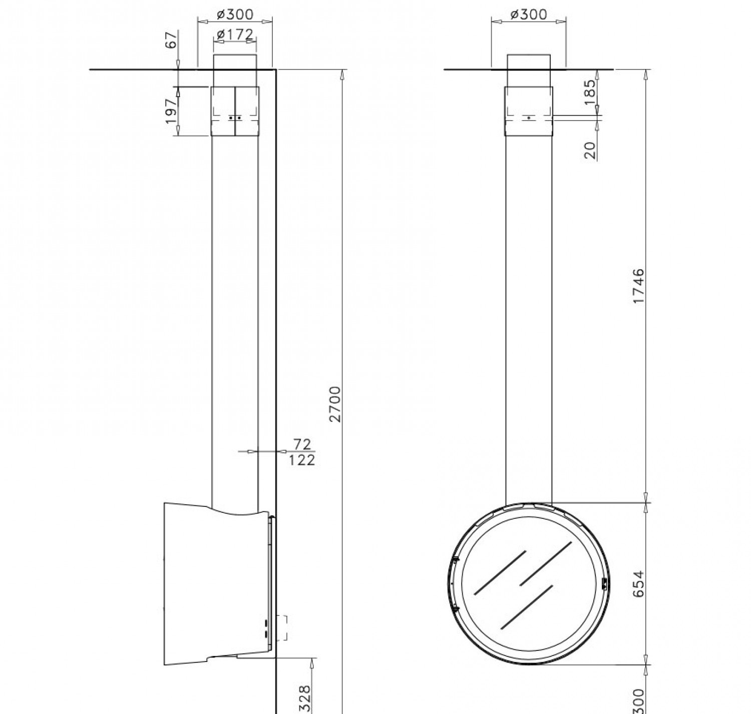Фронтальный (пристенный) металлический камин. Дрова: 30 см.