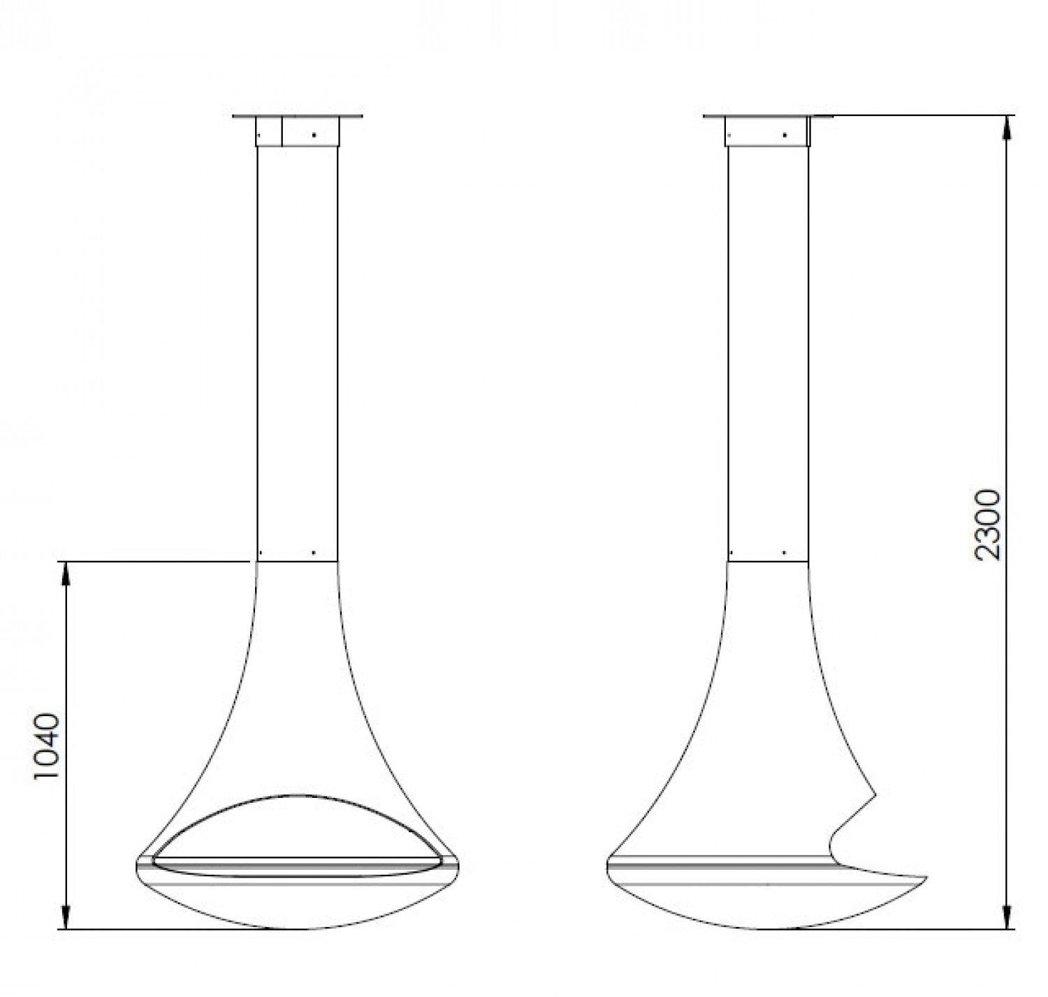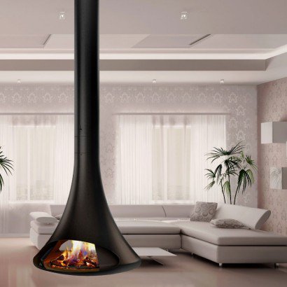 Центральный подвесной двусторонний камин без системы вращения. Цвет - черный.