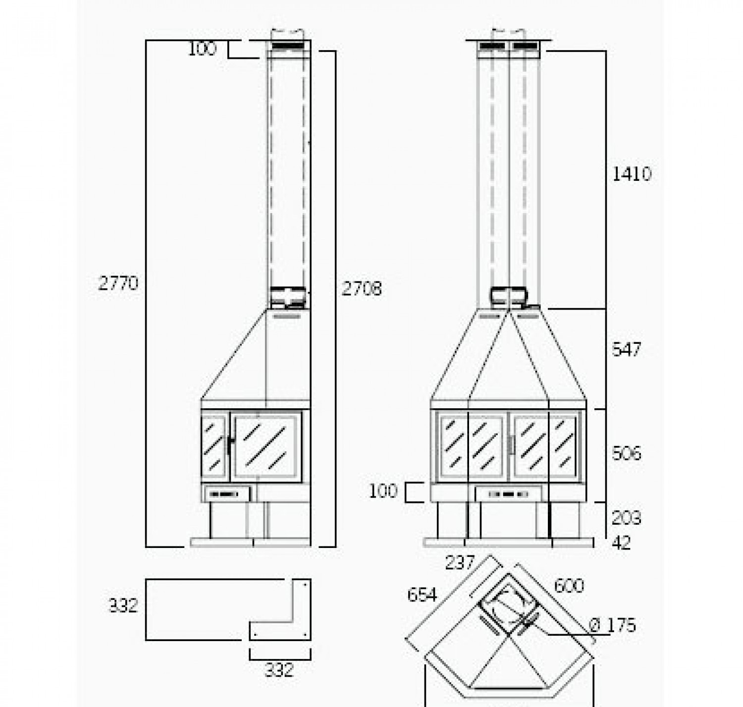 Угловой металлический камин.
