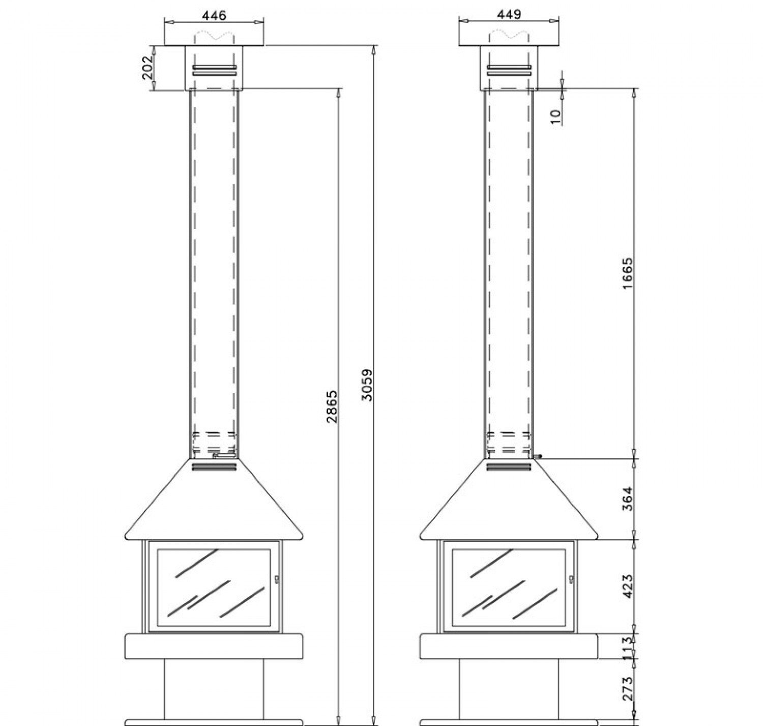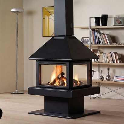 Центральный металлический камин с 4-я дверцами. Дрова: 35 см.