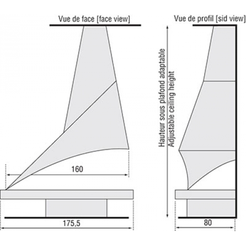 - > Все модели представлены с высоты под потолком в 250 см. Высота регулируется в соответствии с вашими требованиями, дымоходов и скатов крыши.