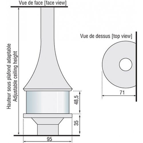 - > Все модели представлены с высоты под потолком в 250 см. Высота регулируется в соответствии с вашими требованиями, дымоходов и скатов крыши.