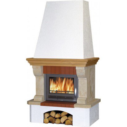 Представленный чешский камин ABX Preston Klasik (белый цоколь) с облицовкой из песчаника оборудован закрытой топкой.