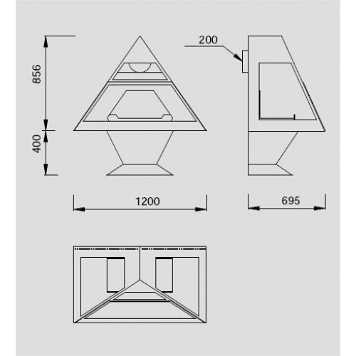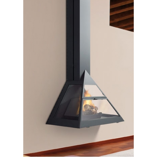 Этот уникальный фронтальный камин с задним подключением к дымоходу покоряет своей формой точёной пирамиды – выполненная из стекла и стали, эта модель не имеет себе равных! Трёхсторонний обзор огня позволяет наслаждаться видом чарующего пламени и гарантирует восхищённые взгляды окружающих. По желанию клиента может быть выполнен как в подвесном варианте, так и с подножием (для версии с подножием предусмотрен забор воздуха извне). Цвет чёрный или серый (антрацит). Опции: этаноловая горелка, листовое покрытие для пола, набор для приготовления пищи на решётке.