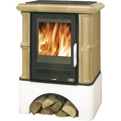 Кафельная печь Bavaria K - вставка комбо, прямой цоколь табак, с теплообменником (4,2 кВт в воду)