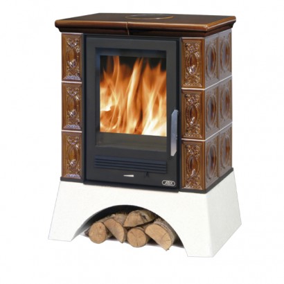 Кафельная печь Helvetia KP белый цоколь, вставка комбо коричневая