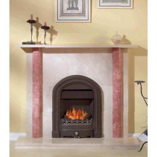 Описание:Портал из полированного мрамора кораллового и кремового цветов.Легкая адаптация к любой топке, в том числе и к электрической.