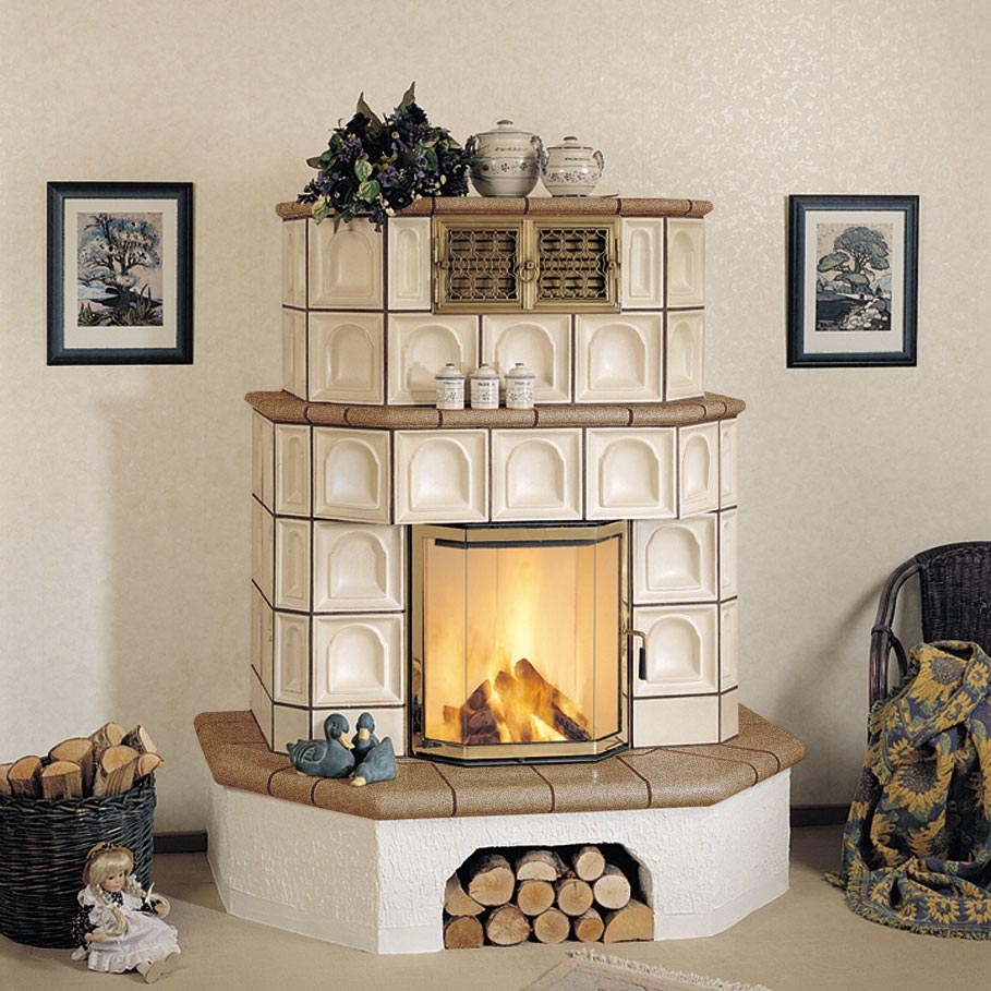 Пристенный камин из изразцов jade (256) + beige-rustik (225).