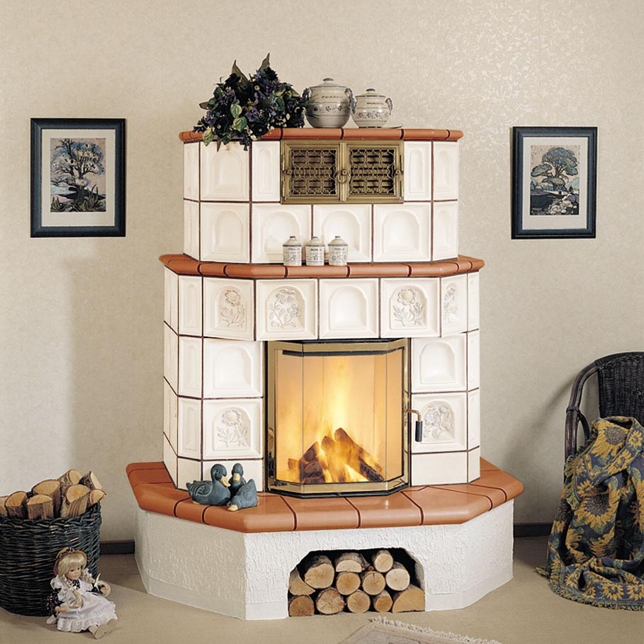 Пристенный камин из изразцов цвета weib-matt (190) + cotto-hell (201).