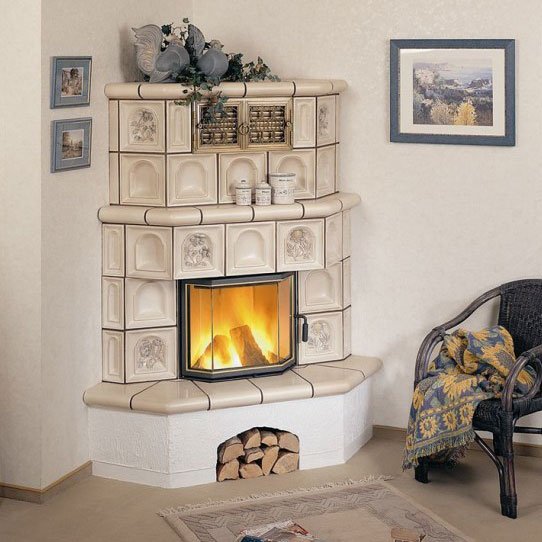 Угловой камин из изразцов.
