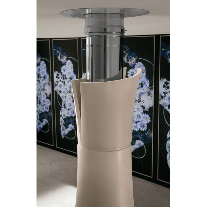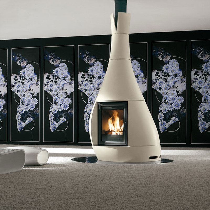 Инновационный центральный камин белого цвета. Выполнен из высокоэффективного цемента последнего поколения. Декоративный материал облицовки окрашен при помощи натуральных оксидов.
