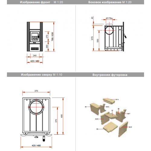 - Диаметр дымохода 180 мм