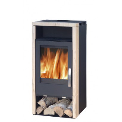 Печь камин ABX Gronland выполнена в форме узкого высокого прямоугольника с двумя нишами. Верхняя ниша используется для разогрева пищи, а нижняя для хранения дров. Для производства топки этой печи используется жаропрочная сталь серого цвета. Большая стеклянная дверка позволяет наблюдать за процессом горения.