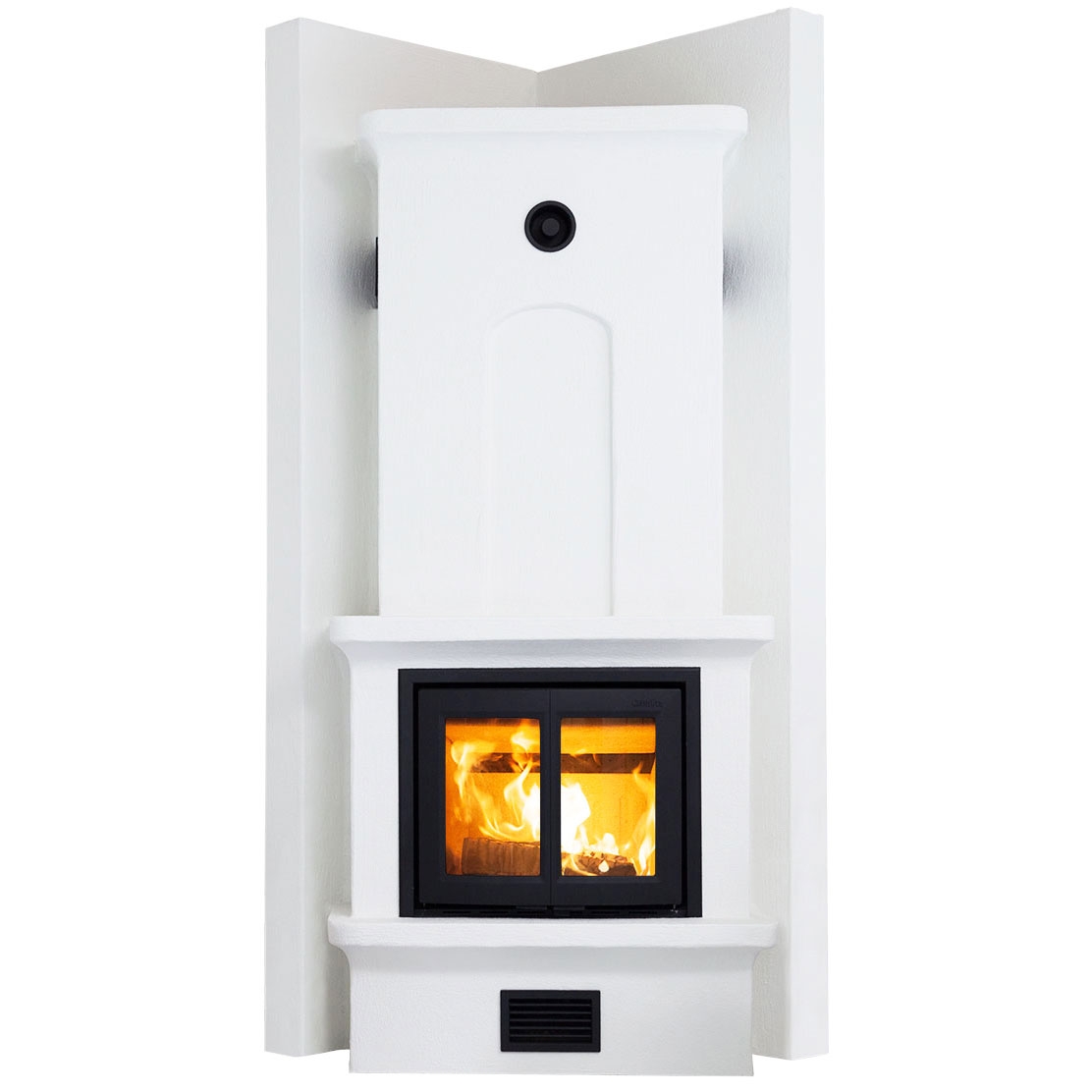 Угловая печь-камин с задним подключением дымохода. Вставка - SK 2001 (включена в стоимость).