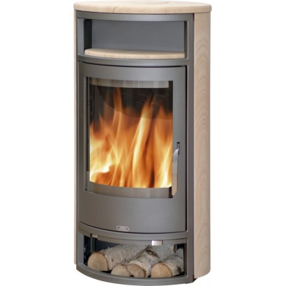 Также в этой печи предусмотрены система двойного дожига, система чистое стекло и функция медленного горения. Под топкой внизу расположена ниша для хранения дров, а над топкой — ниша для разогрева пищи.
