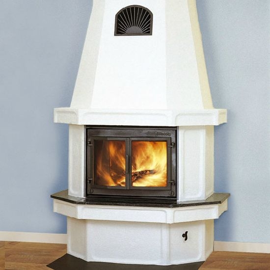 Элегантная печь Regal, обладая классической формой, спроектированна для пристенной установки. Каменная печь Regal является очень эффективным источником тепла. Использование камня Оливи, являющегося натуральным аккумулятором, обеспечивает долгое остаточное тепло. Прекрасная граненая поверхность облицовки изысканно украшена плитой из прерасного мрамора ruivina у топки. Вы можете сами выбрать отделку поверхности, более тонкую или грубую штукатурку, а затем покрасить в любой цвет по своему выбору.