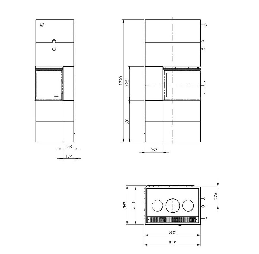 - Диаметр дымохода, (мм) 150