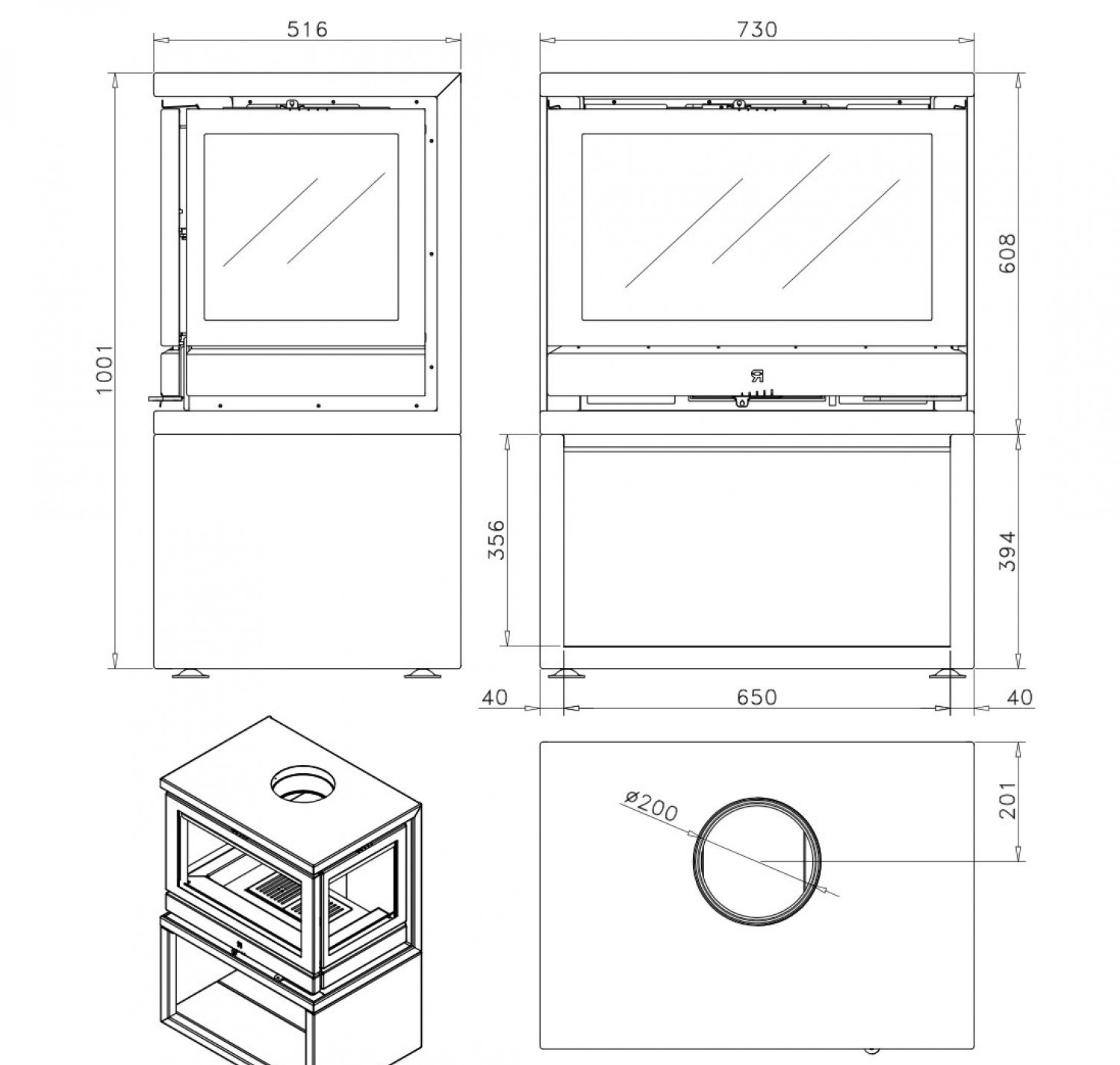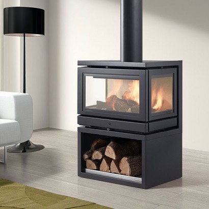 Отопительная печь с трехсторонним обзором огня и комплектом вентиляции.