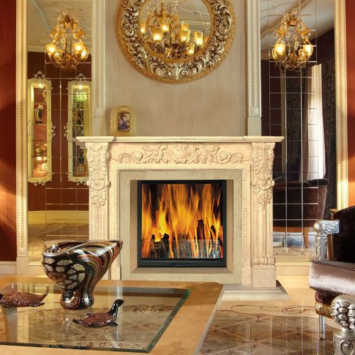 - Подходящие топки: с прямым стеклом с подъемом или боковым открыванием дверцы, открытая топка, электроочаг. В комплект входят плиты для адаптации под топку