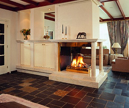 Выбирая материал для облицовки камина, следует уделить внимание нескольким факторам: 1. Во-первых, перед тем как приобретать агрегат, сразу нужно определиться с топочным материалом. Если она выполнена из дерева, то достаточно будет того, чтобы облицовка выдерживала 900°. Если будет использоваться твердое топливо, то нужно отдавать предпочтение материалу, выдерживающему температуру до 1200°. 2. Также следует определиться с местом расположения. Если у вас камин декоративный, который устанавливается в хорошо отапливаемом помещении, то с материалом можно не заморачиваться, т.к. подойдет любой. Если вы собираетесь установить камин, например, на летней веранде, то здесь следует выбирать такую облицовку, которая будет устойчива к морозам. 3. Еще один важный критерий выбора — это влагоустойчивость. При необогреваемом помещении, особенно важно, чтобы этот показатель был высоким. Если не соблюдать этот критерий, то очень скоро облицовка начнет отслаиваться и трескаться. 4. Также на выбор облицовочного материала оказывает влияние масса конструкции, которая в свою очередь зависит от места размещения агрегата. Если камин будет располагаться в частном доме на первом этаже, то на помощь может прийти дополнительный фундамент. В случае, если вы планируете устанавливать его на втором этаж, то здесь вес играет очень большую роль, поскольку перекрытие может попросту не выдержать большого веса каминной установки.