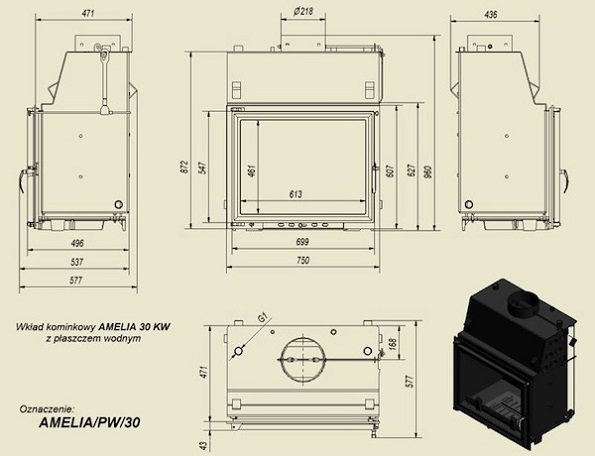 Топка с водяным контуром AMELIA/PW/30