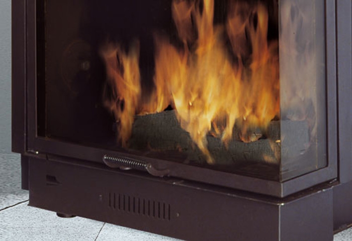 Топка с водяным отоплением из толстой стали, способный производить горячую воду, поступающую в контур системы отопления и на радиаторы, а также производить горячую техническую воду. Дверца с поъемом, с боковым стеклом. Камин может устанавливаться как пристенный или как фронтальный.