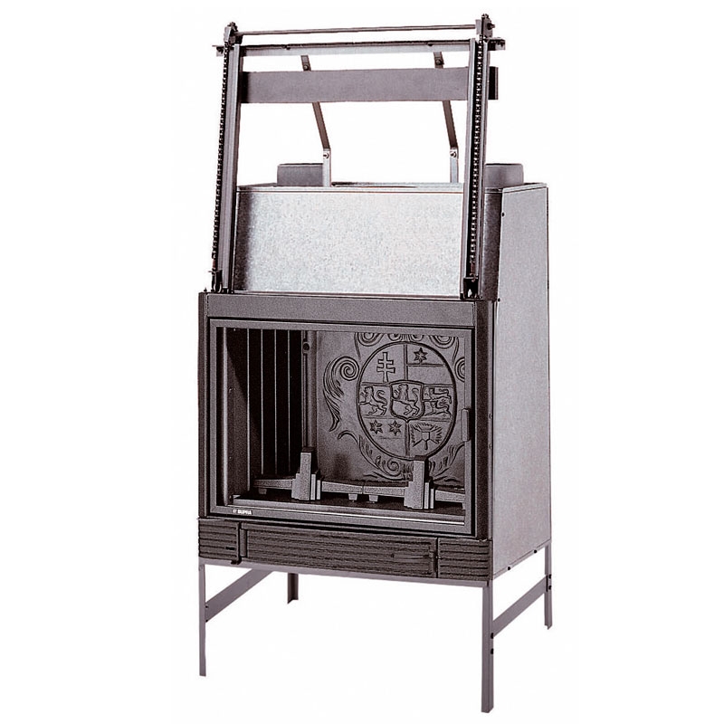 Чугунная топка с дверцей, открываемой вверх.