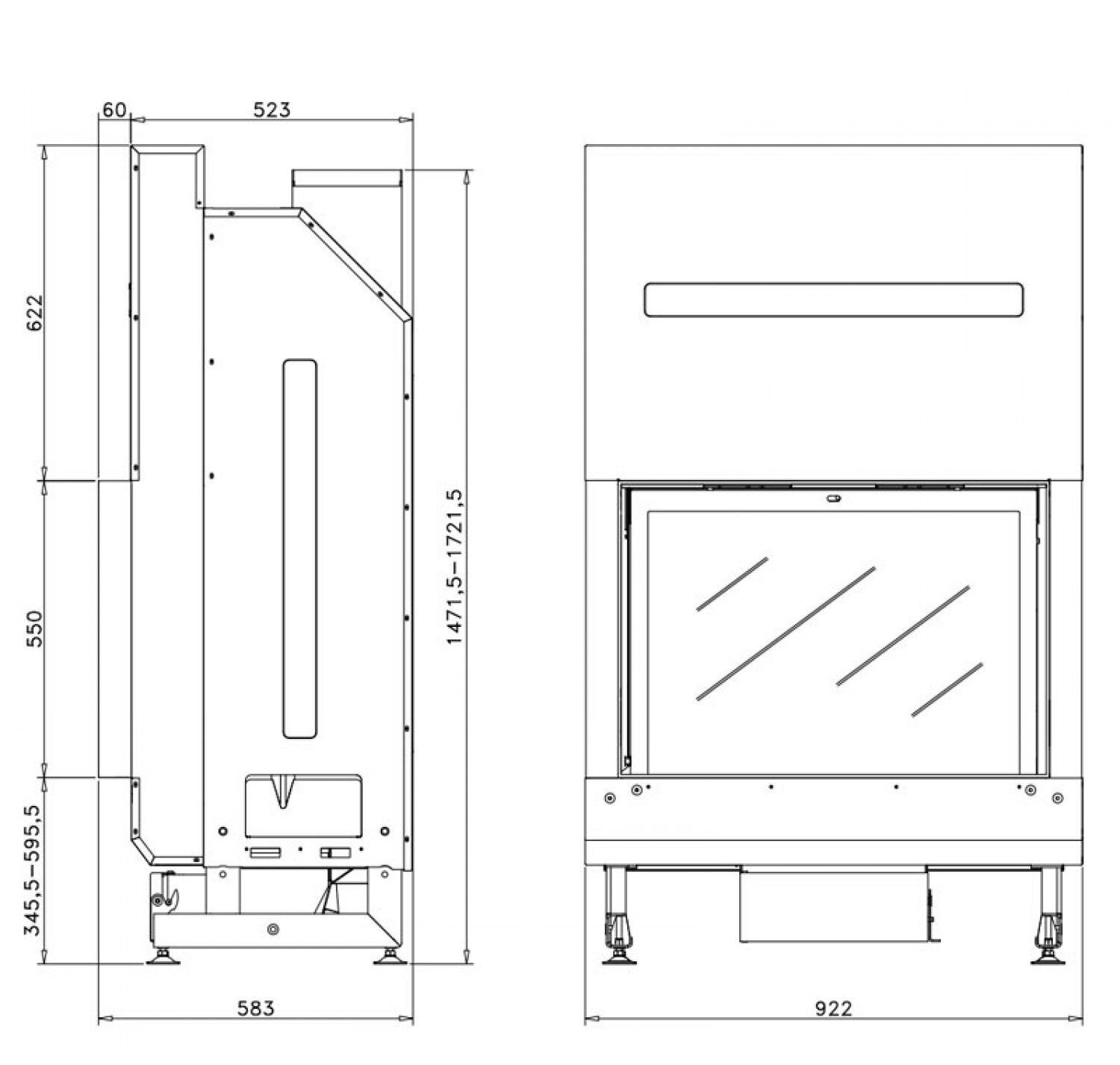 Односторонняя стальная топка с плоским стеклом. Дверца с подьемом вверх.