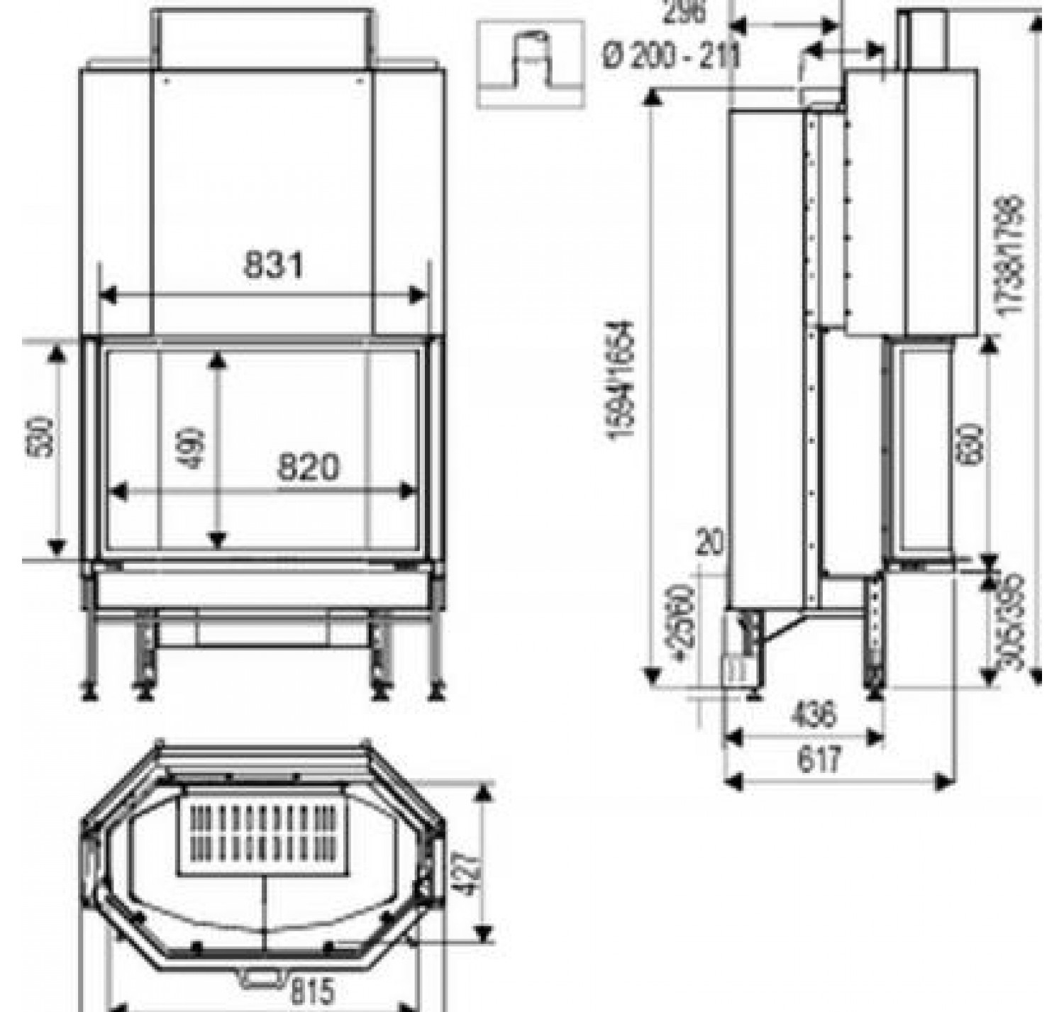 - Диаметр дымохода, (мм) 200 мм.