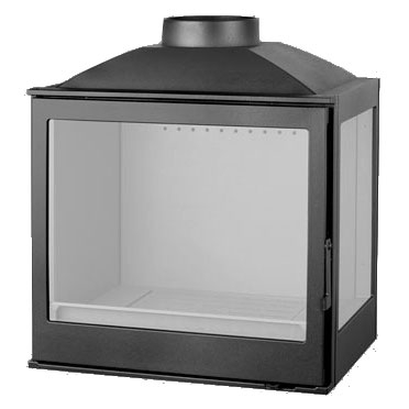 Каминная топка с дымосборником. Стекло справа. Цвет - черный.