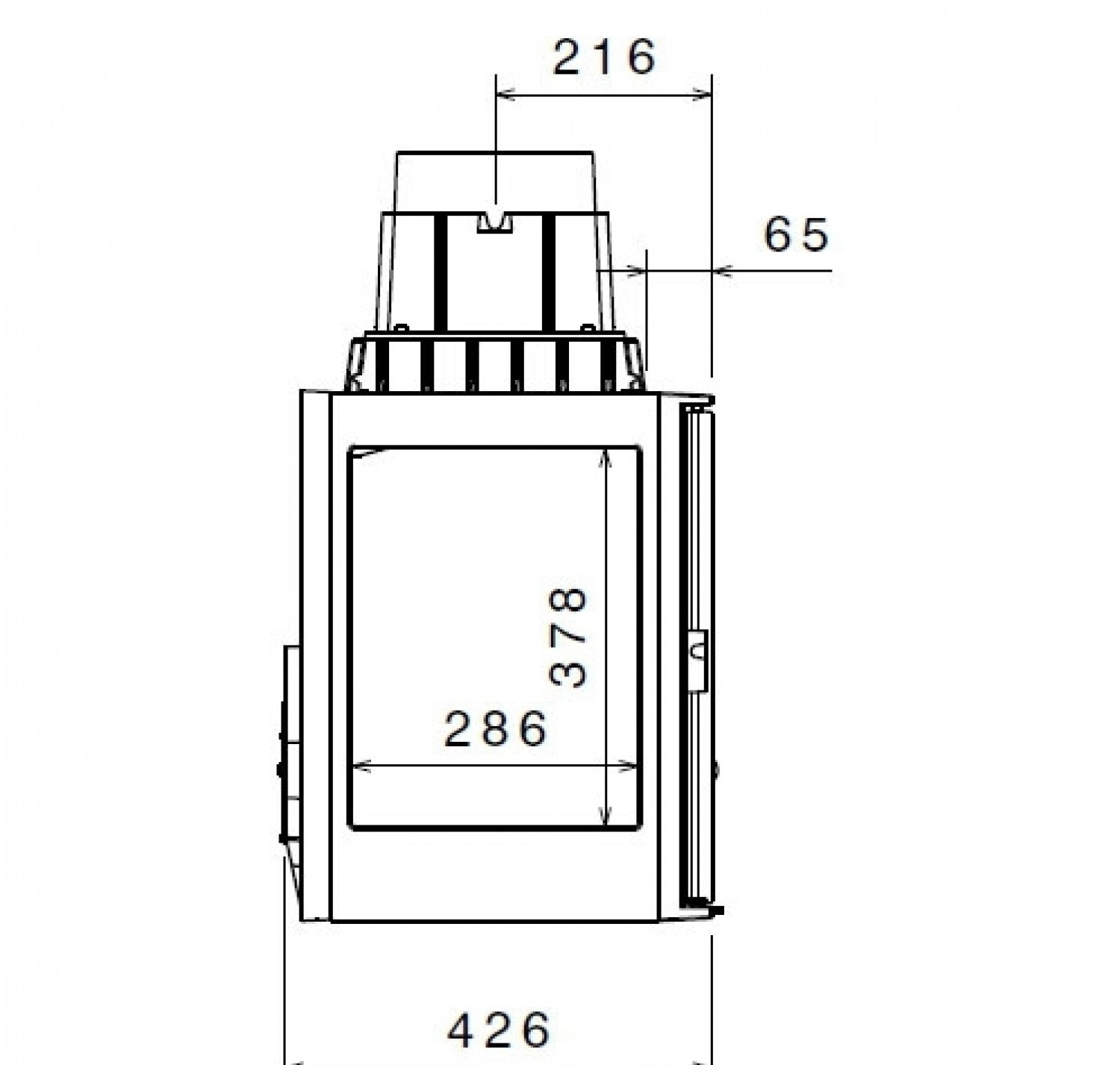 Чугунная каминная топка. Стекло слева.