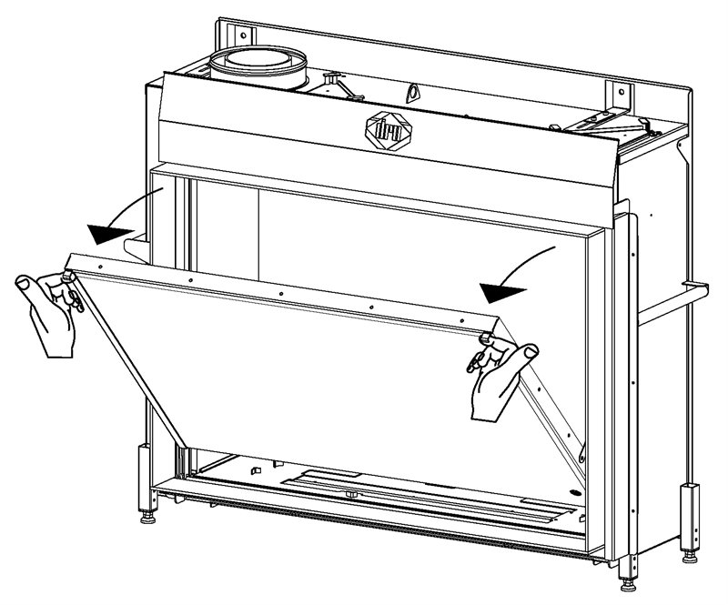 С помощью рычага в верхней части топки, вы можете легко и быстро открыть дверцу. Стекло останавливается в заданном положении, так что можно легко очистить его. Также стекло полностью съемное.