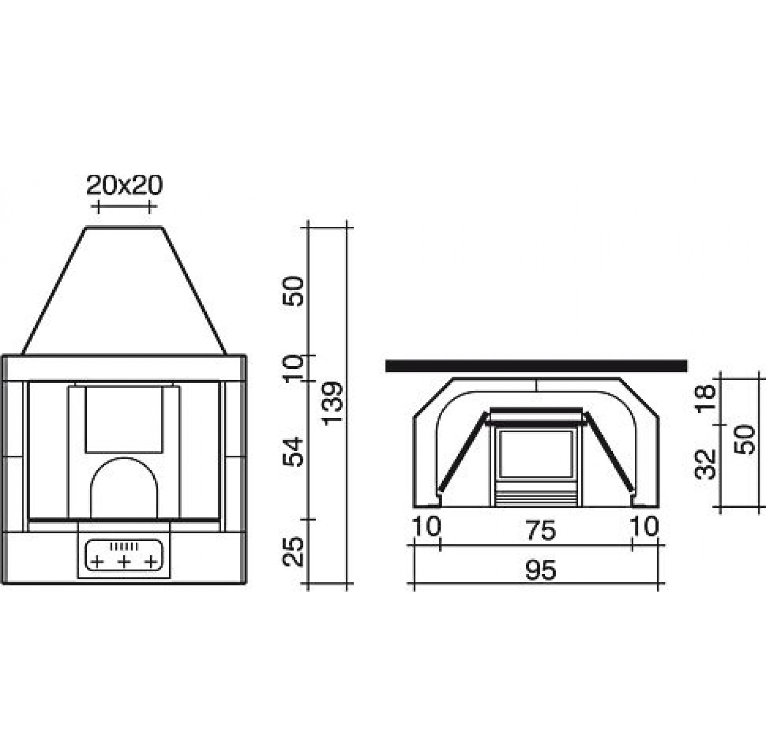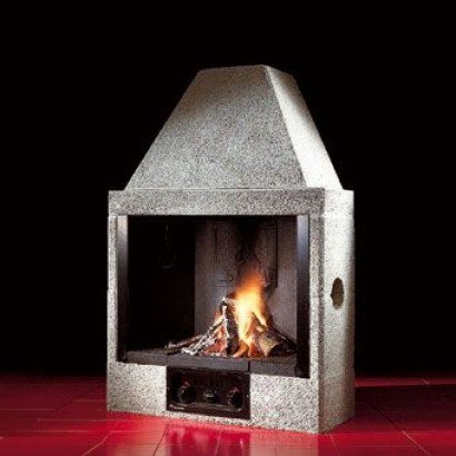 Открытая топка с внутренним очагом из толстого чугуна с двойной стенкой, позволяющей обеспечить хорошую тягу. Может устанавливаться в пристенные или угловые модели облицовок. Основаине очага состоит из двух огнеупорных пластин и центральной чугунной панели для колосниковой решетки.