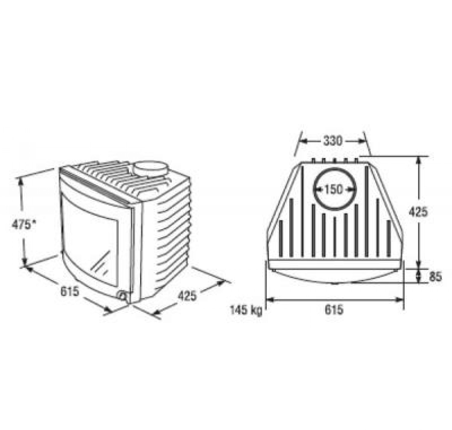 Каминная топка с разделительным стеклом.