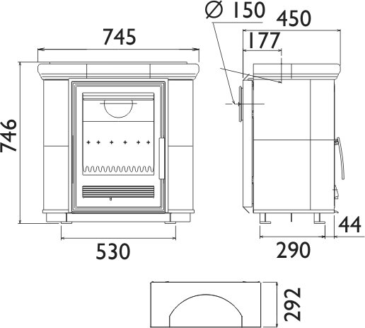- Диаметр дымохода, (мм) 150