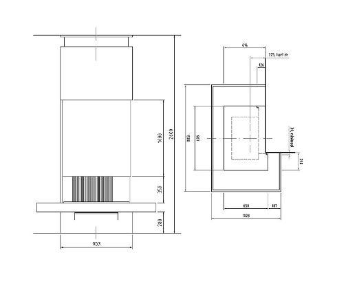 Цена указана за камин в стандартном исполнении (см. чертеж).